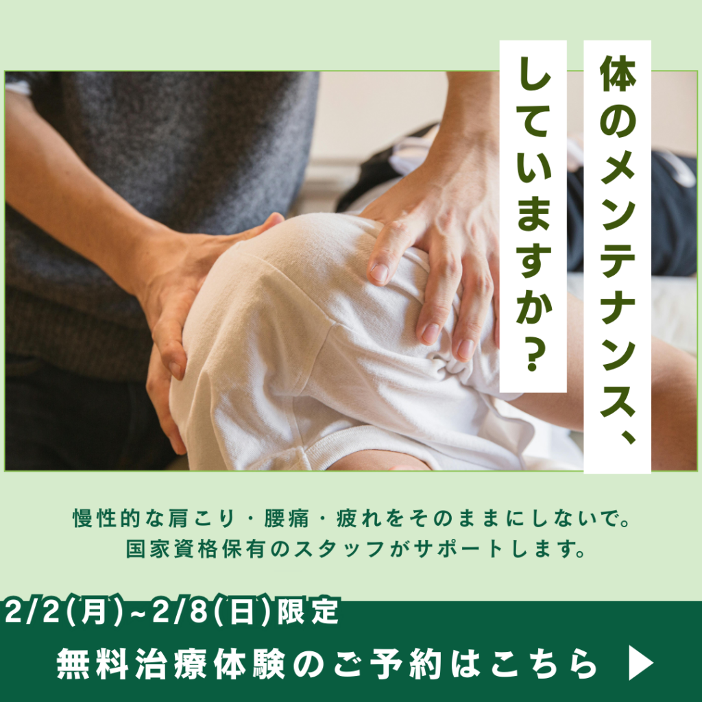 身体のだるさや痛みを理由に諦めていることはありませんか?仕事帰りも、家事のすきま時間にも、行きたい時に行けるひらかれた接骨院です。それぞれの患者様に合わせた丁寧な施術を提供し、心身のリフレッシュをお手伝いいたします。経験豊富な専門家が、あなたの健康をサポートし、元気な毎日を取り戻すお手伝いをします。どんな些細な不調でも、お気軽にご相談ください。リラックスできる空間で、あなたの健康を第一に考えたケアをお約束します。元気な未来への第一歩を、私たちと一緒に踏み出しましょう。